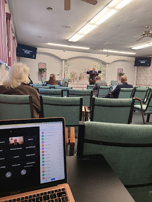 The attendance at the Hall one Sunday: 14. Two sisters were scheduled to handle mics, but the crowd was so small, we only needed one!